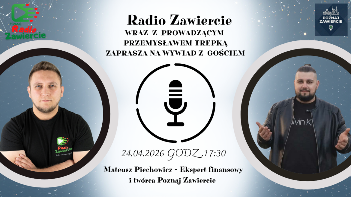 Gościem programu prowadzonego przez Przemysława Trepkę będzie Mateusz Piechowicz – ekspert finansowy, twórca kanału Poznaj Zawiercie.