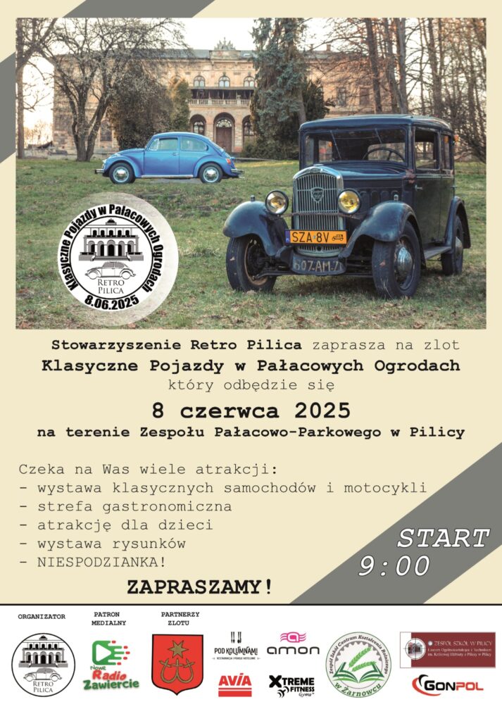 Zapraszamy na nasz pierwszy zlot, który odbędzie się 8 czerwca 2025 roku w wyjątkowym miejscu – Zespole Pałacowo-Parkowym w Pilicy.