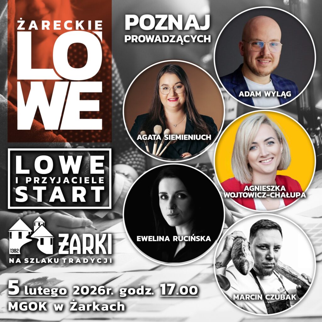 Burmistrz Miasta i Gminy Żarki Adam Zamora zaprasza na spotkanie inaugurujące projekt „LOWE i Przyjaciele – START!”, które odbędzie się 5 lutego 2026 r. o godz. 17:00 w Miejsko-Gminnym Ośrodku Kultury w Żarkach. Udziały w wydarzeniu i projekcie są bezpłatne.