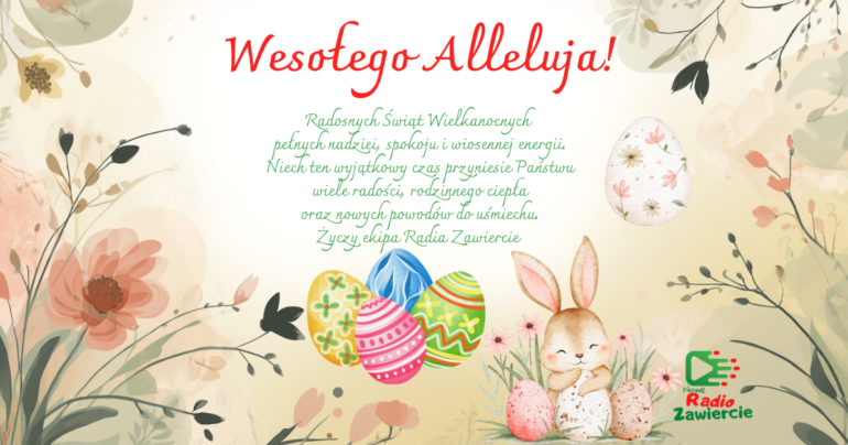 Z okazji nadchodzących Świąt Wielkanocnych cały zespół Radia Zawiercie składa Państwu najserdeczniejsze życzenia. Niech ten wyjątkowy, wiosenny czas będzie pełen nadziei, spokoju oraz rodzinnego ciepła. Życzymy, aby świąteczne spotkania przy wielkanocnym stole przyniosły wiele radości, życzliwości i odpoczynku od codziennych obowiązków. Niech wiosenna atmosfera doda energii do realizacji planów i marzeń. Dziękujemy, że jesteście z nami – słuchacie, oglądacie i tworzycie razem z nami lokalną społeczność.
